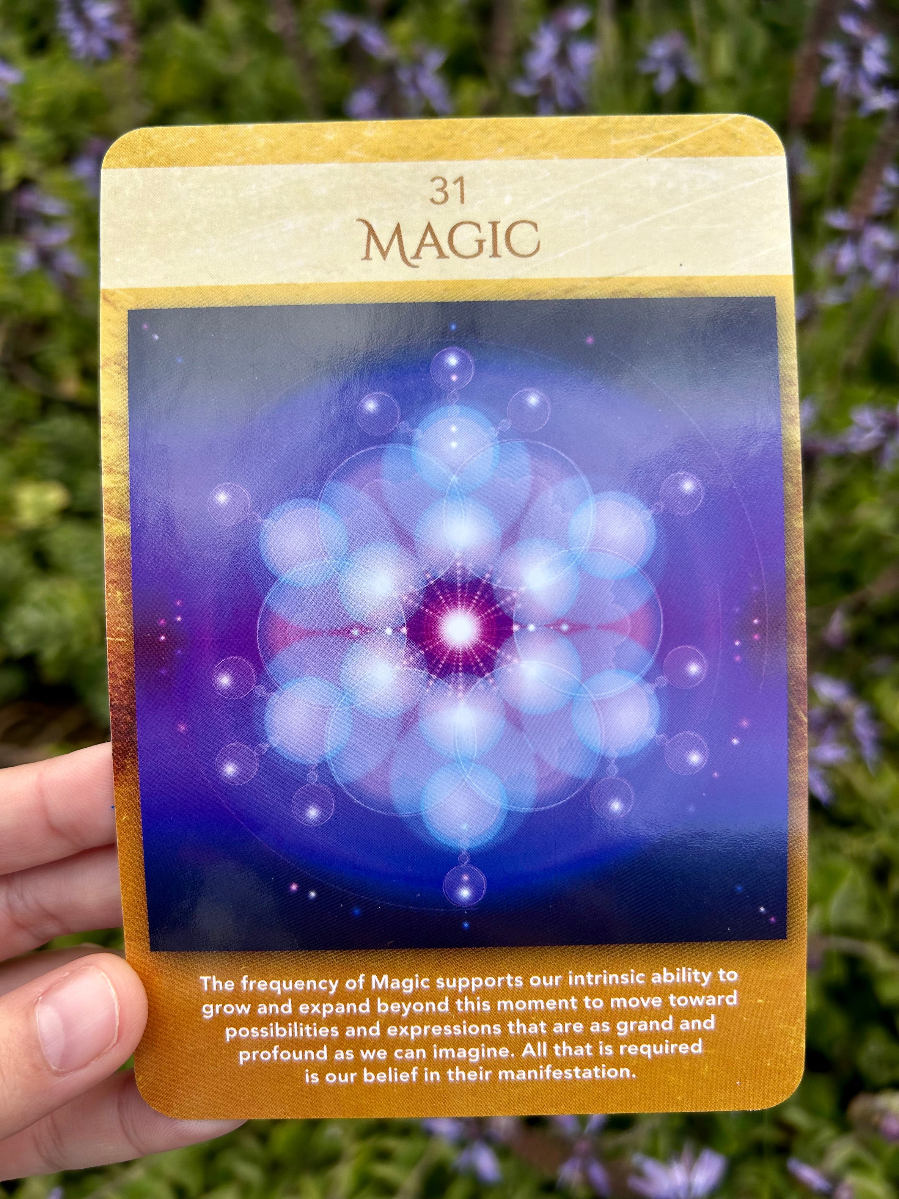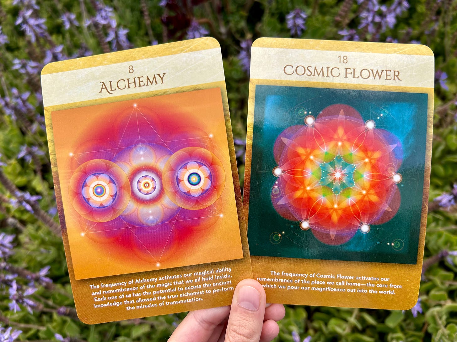 The deck I chose for this week’s spread is the Sacred Geometry Activations Oracle by a creator named Lon. What makes this deck unique is that the creator is also the illustrator.