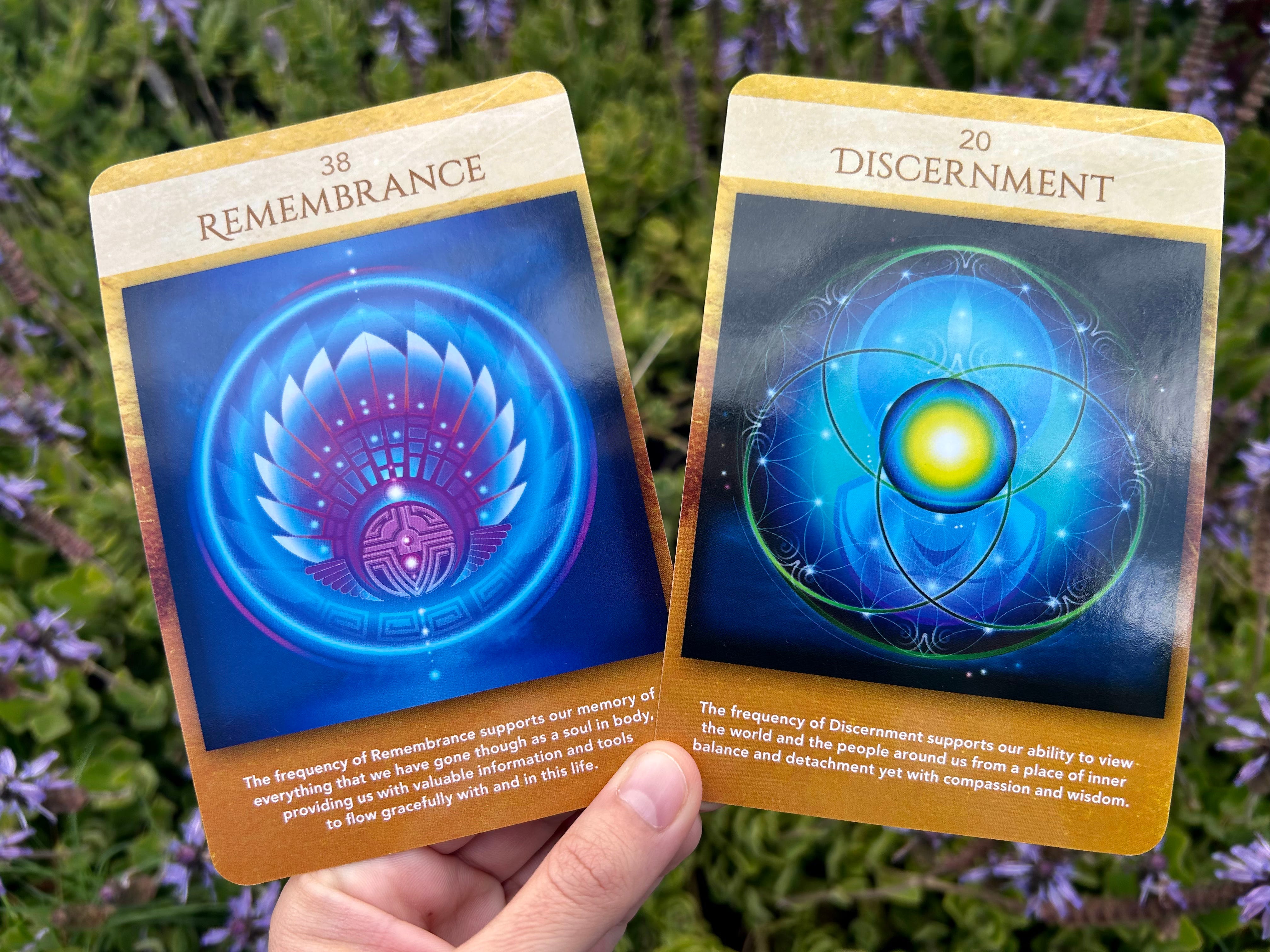 The Remembrance card and the Discernment card show a potential for growth through reflection and clarity this week. You may be connecting dots from your past while they are processing what feels right in the present. Together, these energies encourage understanding, accountability, and the opportunity to approach one another with more awareness. Speak honestly, stay open-minded, and allow insight to guide your next steps.